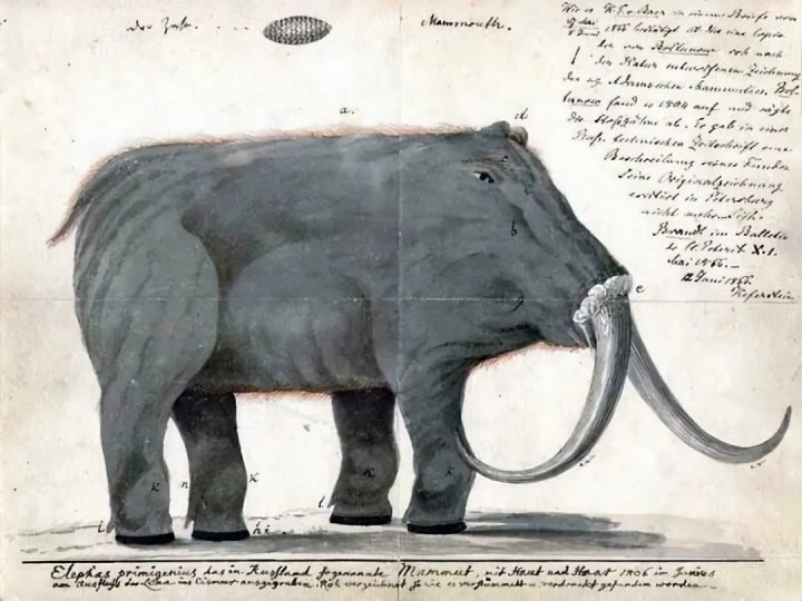 根据在西伯利亚永久冻土中发现的冷冻尸体对 1805 年猛犸象的早期描述